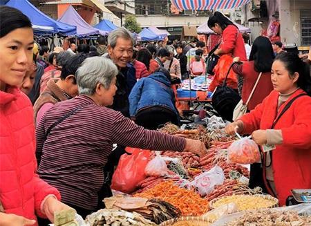 临近春节,著名侨乡广东台山的各个“墟”比平日热闹不少,处处充满年味,当地民众“等墟”(台山话,赶集之意)买年货,纷纷称“好心喜”(台山话,好开心之意)。