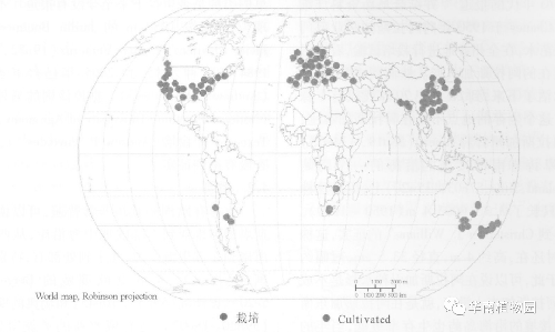 ▲水杉全球栽培情况(摘自马金双, 2008, 武汉植物学研究)