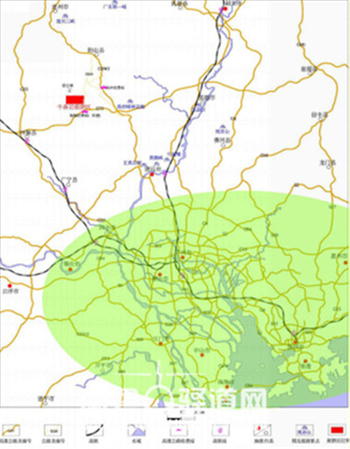 图为广东省阳山县牛鼻岩地区交通位置图。